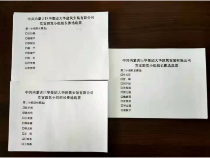 三、組內(nèi)推選,確定組長。經(jīng)過該小組參會組員的投票選擇,確定出每個小組的組長。第一黨小組組長付智勇同志,第二黨小組組長姚光偉同志,第三黨小組組長牛玉芬同志。